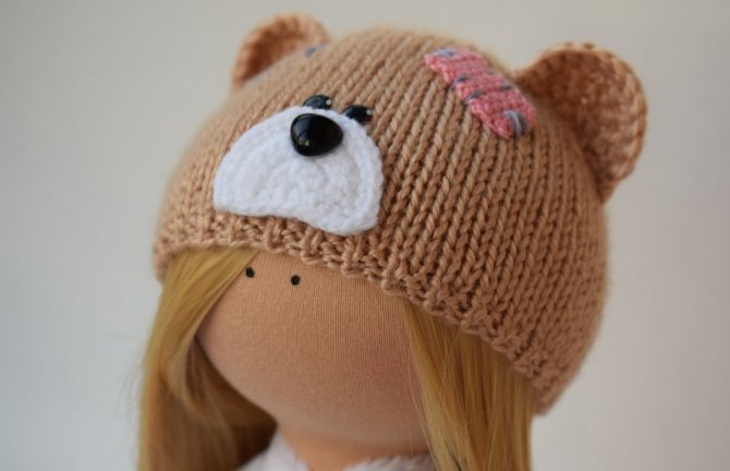 В такой оригинальной, но одновременно простой шапке будет интересно смотреться любая кукла – Большеножка, Пупс, Барби. Дополнительно основу вещи можно украсить бусинками или стразами.
