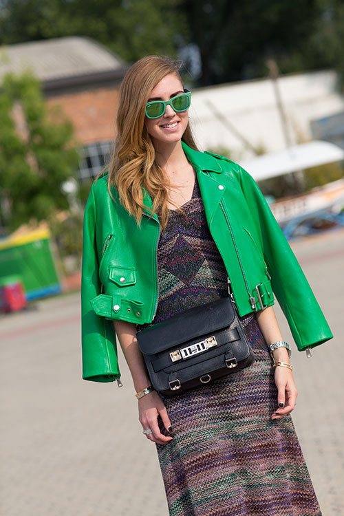 Принт, который, несомненно, выигрывает рядом с кожаной зеленой курткой — леопардовый. Свежий зеленый цвет отлично оттеняет его, делая естественным и органичным.